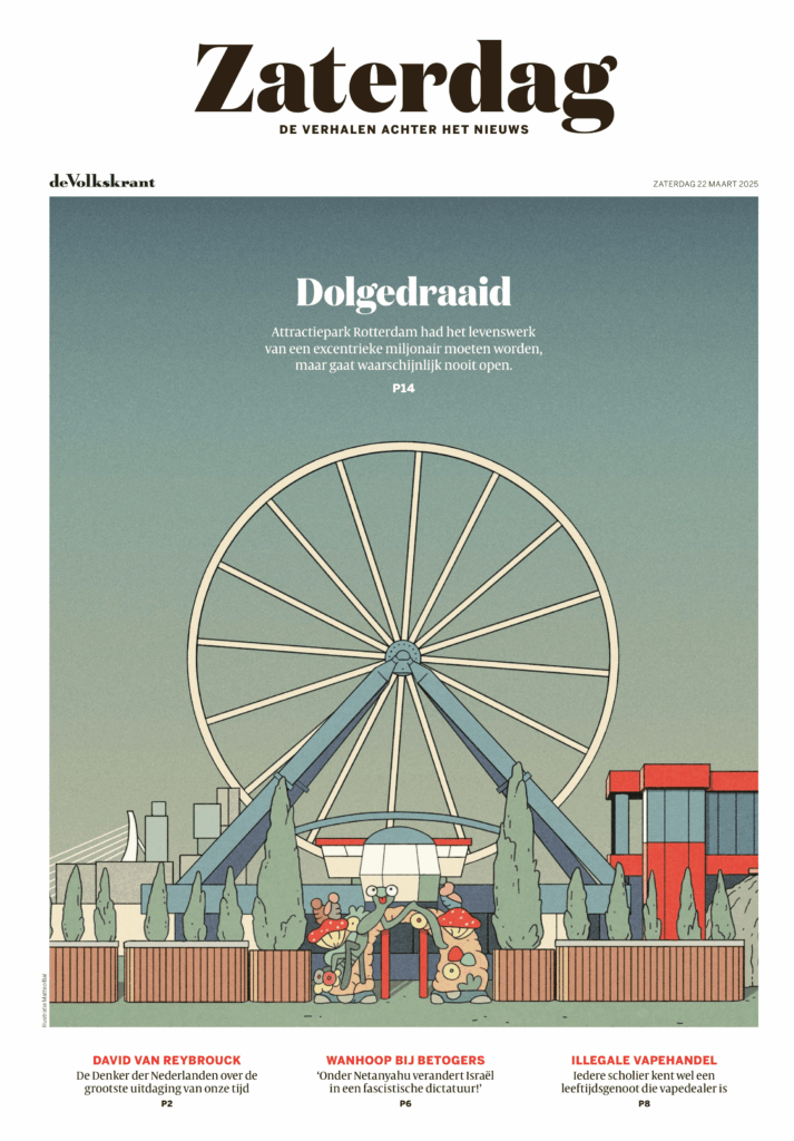 Dat was het zeker, want Van der Most bleek de ondernemer die het dichtst in de buurt komt van de Nederlandse Willy Wonka. Iedere dag, zo leerde we toen we hem uitgebreid interviewden, heeft hij weer nieuwe, vernieuwende ideeën, die hij zelf op een papiertje tekent en vervolgens laat uitwerken door zijn architecten. Hij had in het verleden al een gigantisch, ronddraaiend restaurant in Zwolle ontworpen, een pretpark in een Duitse kerncentrale, het eerste all-inclusive hotel ooit in Nederland, enzovoorts. En omdat pretparken zijn grote liefde zijn (zijn kantoor hangt vol tekeningen van weer een nieuwe attractie die hijzelf heeft bedacht) begon hij tien jaar geleden, toen hij 65 werd, aan zijn magnum opus: een volledig gerecycled pretpark pal aan de Maas in Rotterdam, de stad van niet lullen maar poetsen, een stad naar zijn hart dus.